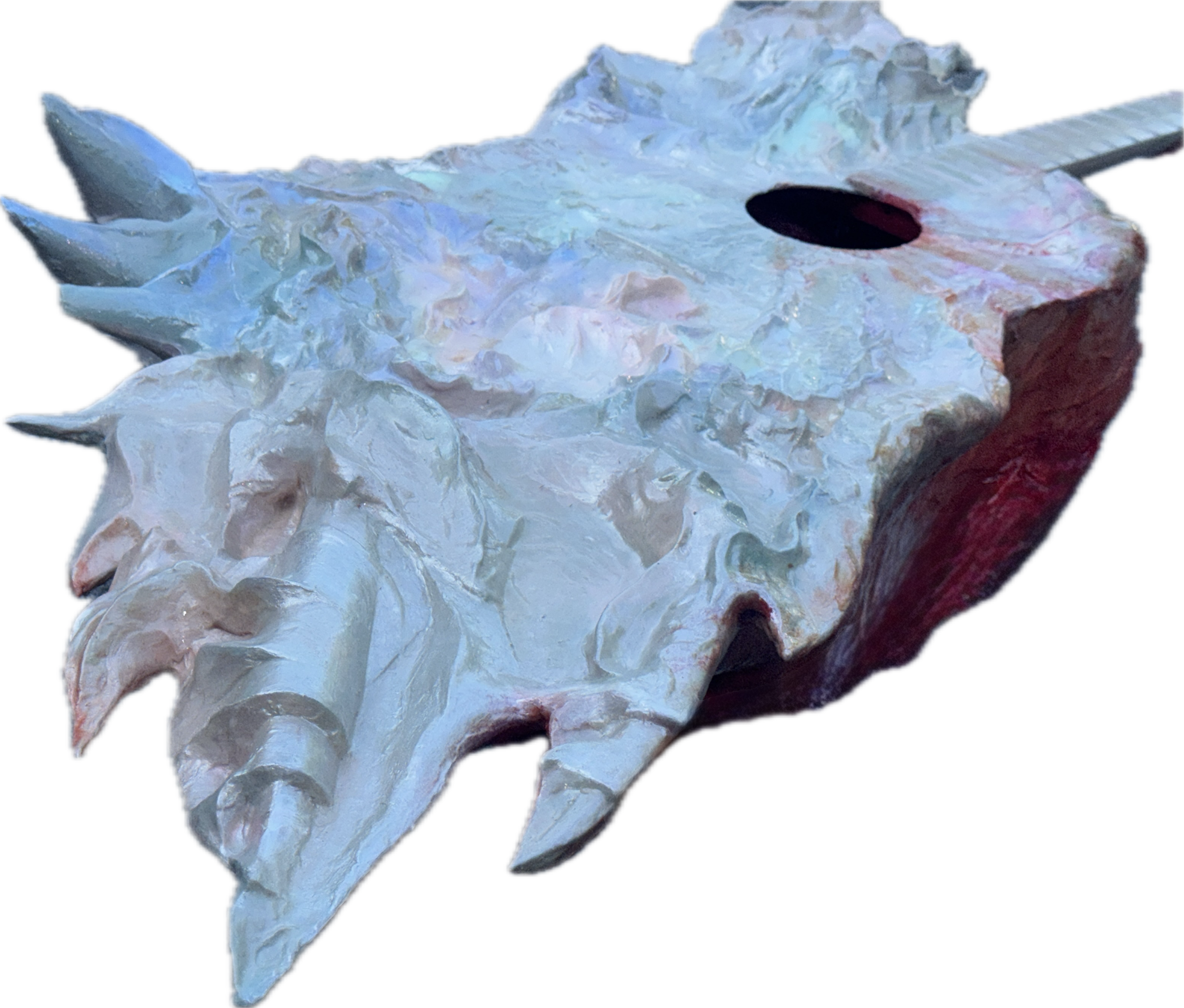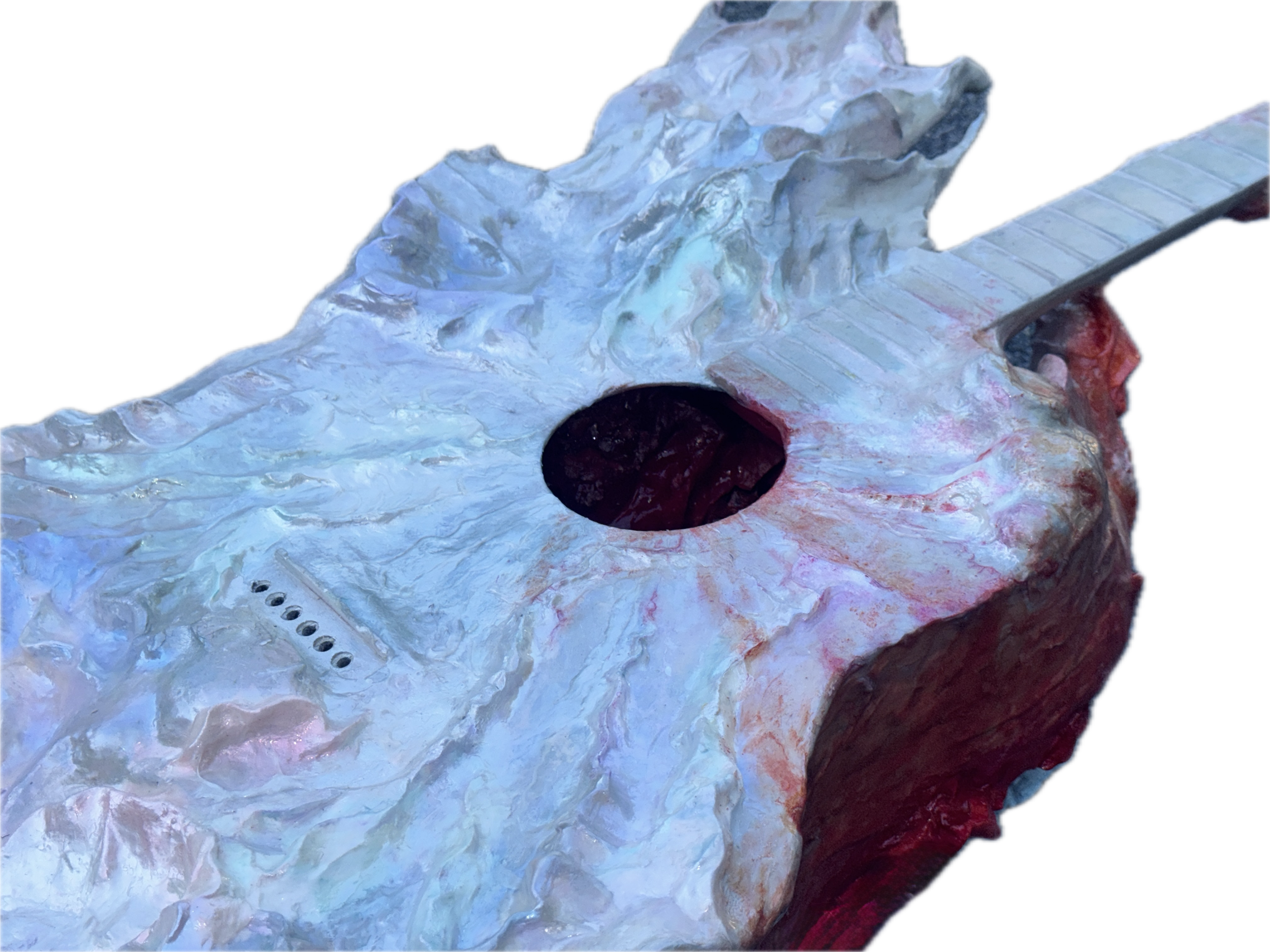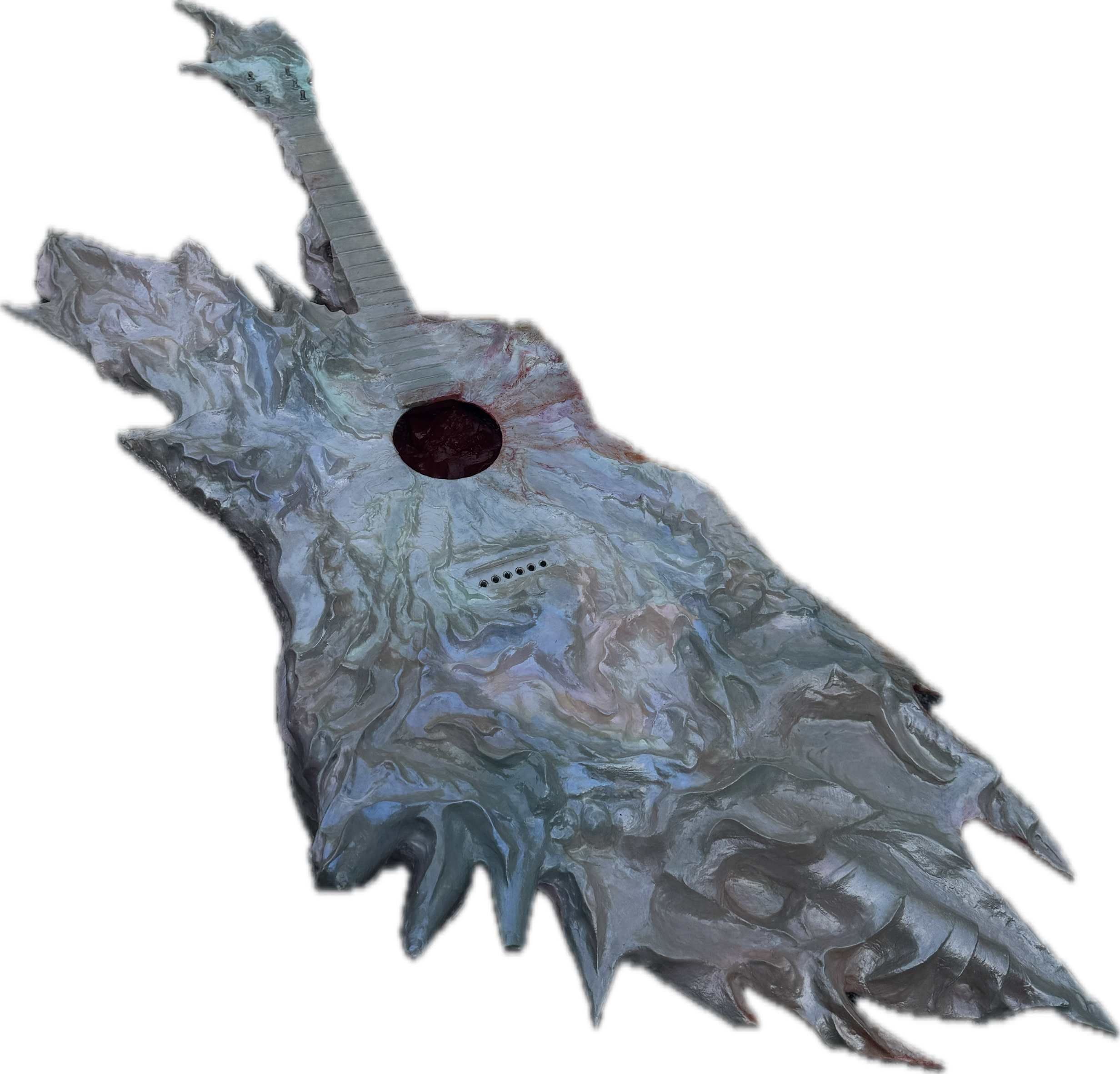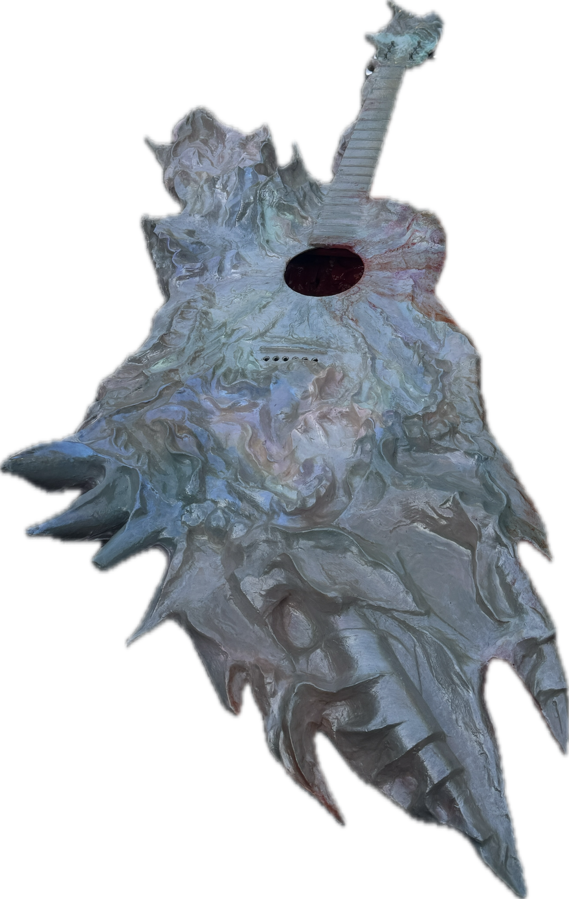 Sculpture, Acoustic Guitar, acrylic, plastic trash, cardboard, wall filler, clay, 150 x 60 x 30 cm, 2025