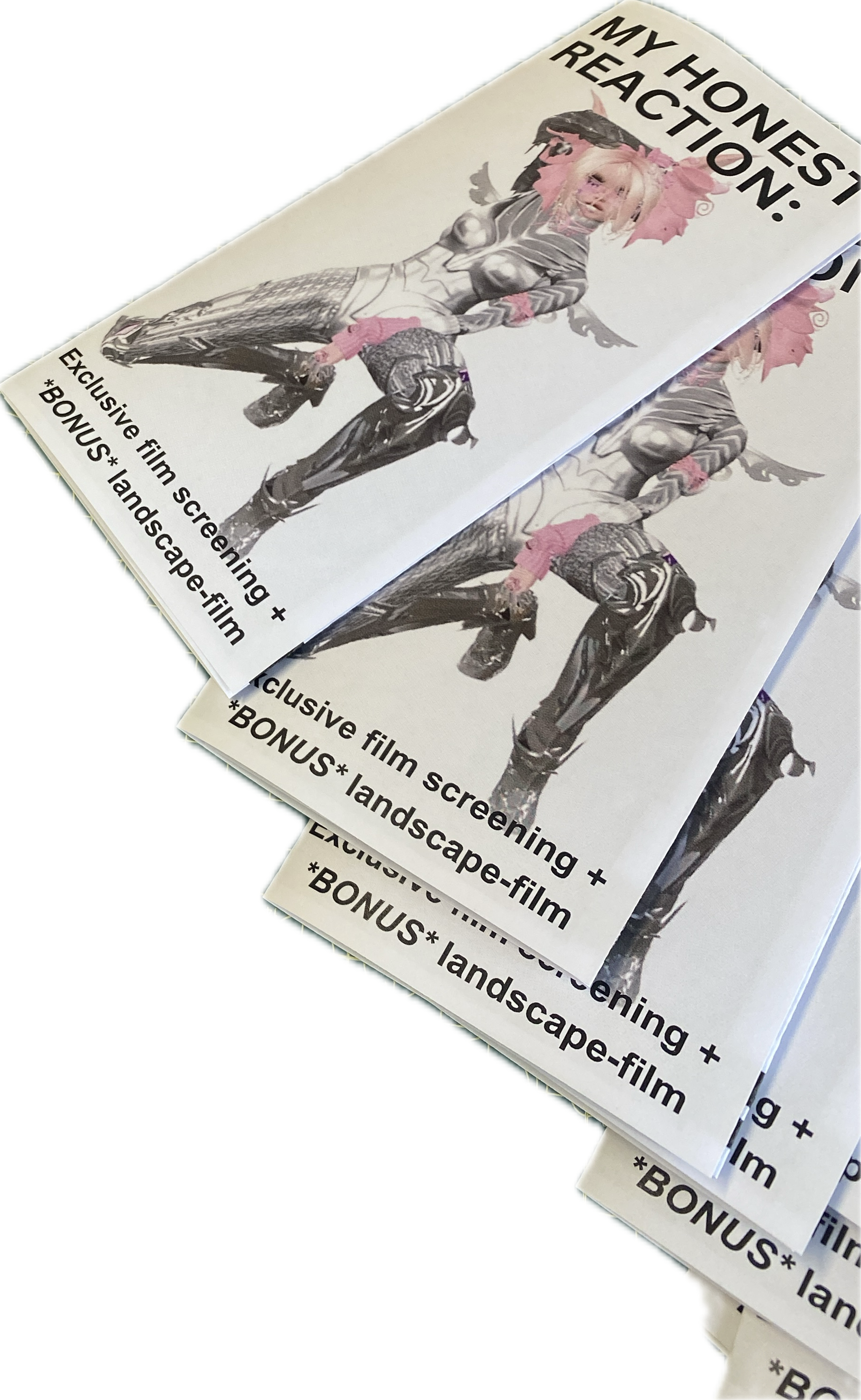 My Honest Reaction: , 5 minutes, film screening and zine, 2025, https://www.youtube.com/watch?si=x8Ht-mDxot6rlqSH&v=Qp8fA5j0pes&feature=youtu.be
